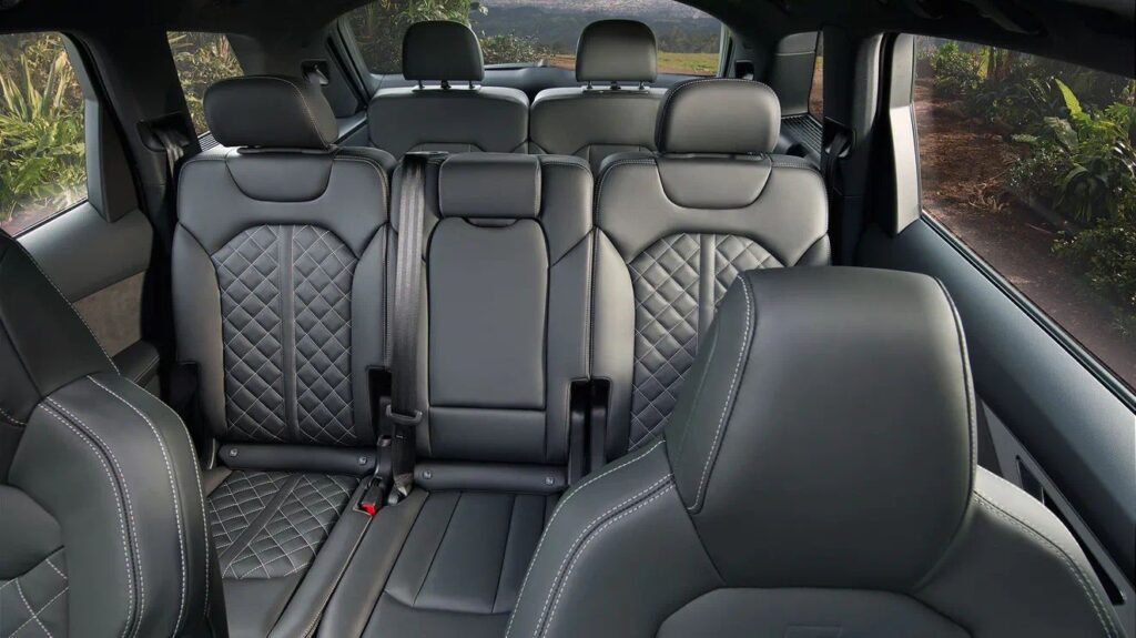 Nội thất: Audi Q7 có nội thất rộng rãi, sang trọng và tiện nghi. Xe có thể chở được 7 người với ghế da cao cấp, ghế lái chỉnh điện 8 hướng, ghế sau gập điện và ghế thứ ba gập tay3. Xe cũng được trang bị hai màn hình cảm ứng, một ở trên để điều khiển các chức năng giải trí và thông tin, và một ở dưới để điều khiển các chức năng tiện ích như điều hòa, nhập liệu văn bản,…4. Xe còn có gói tùy chọn thiết kế Audi cung cấp cho bạn sự lựa chọn đa dạng về vật liệu và màu sắc trong nội thất.